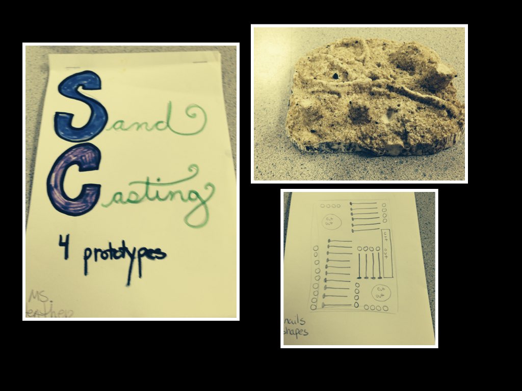 When we studied the Industrial Revolution, we learned the technique of sand casting as practiced in foundries, though we used plaster instead of metal to make our industrial parts.