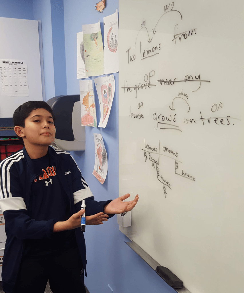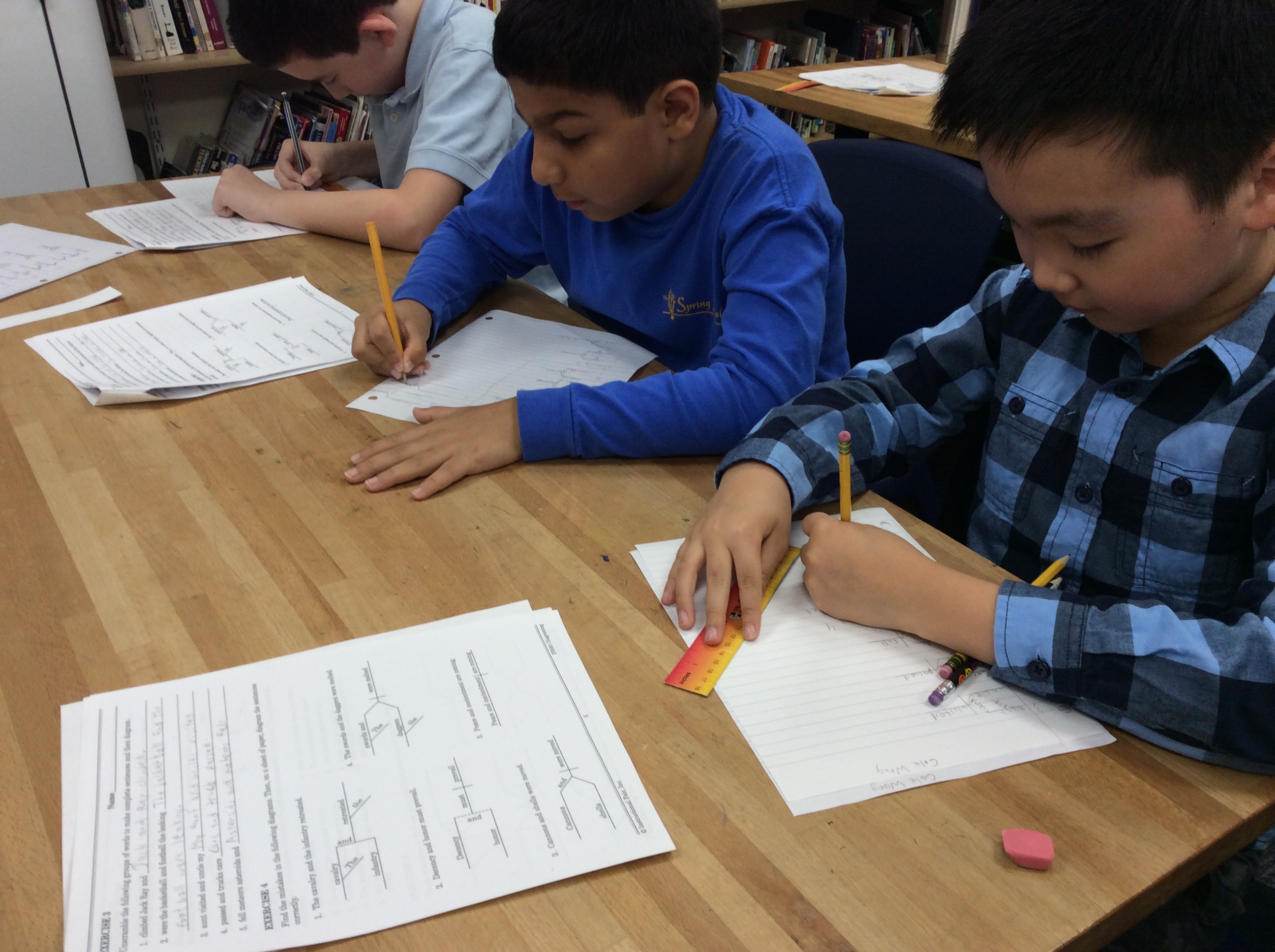 4th and 5th Graders Diagramming Sentences